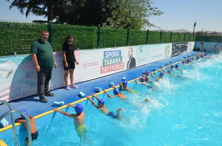Beylikova Belediyesi ve Beylikova Halk Eğitim Merkezi tarafından açılan millet bahçesi portatif yüzme havuzundaki kurslara yoğun ilgi devam ediyor.