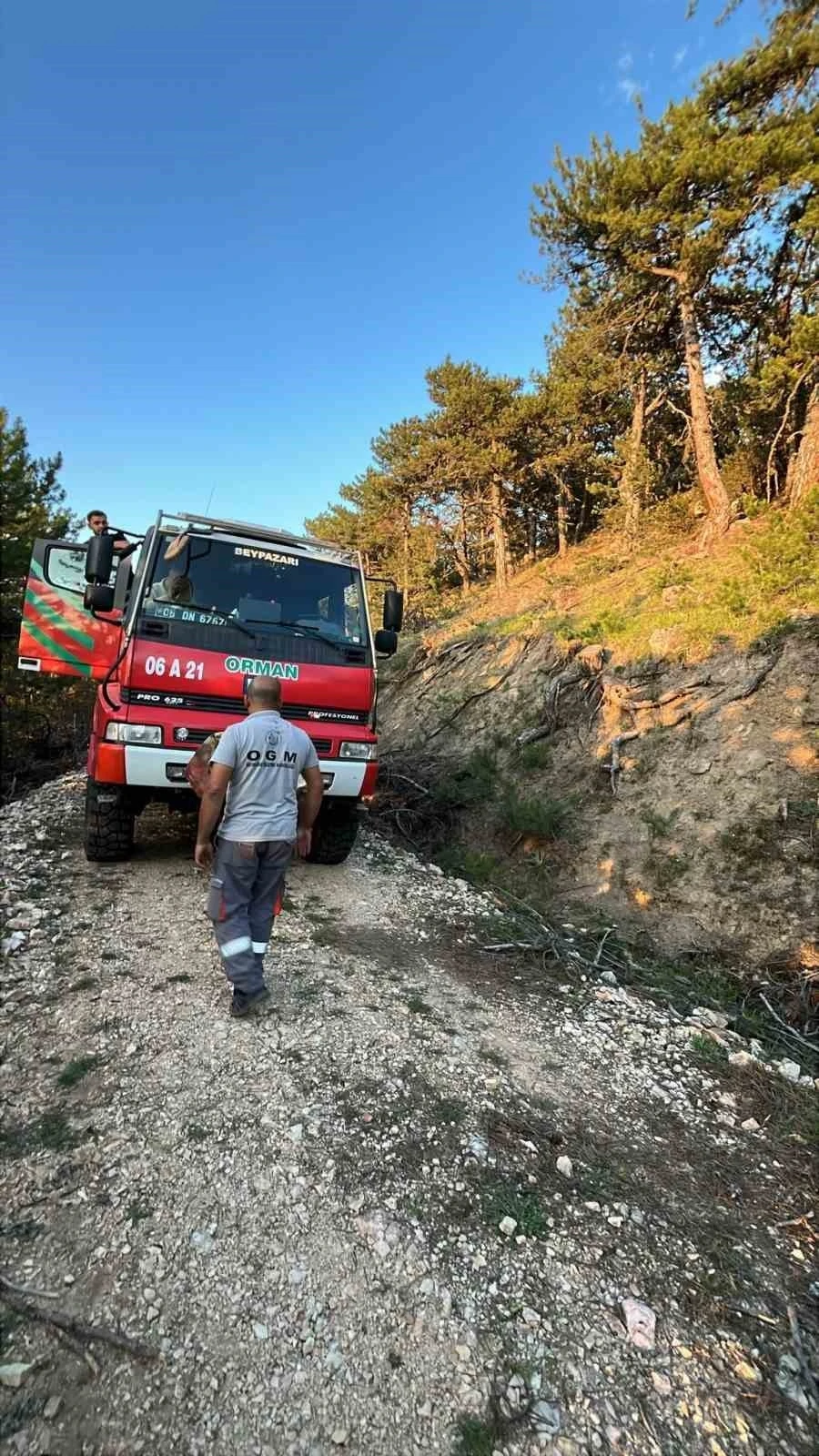 Ankara’nın Beypazarı ilçesinde ormanlık alanda çıkan yangın, itfaiye ekiplerinin müdahalesiyle söndürüldü.