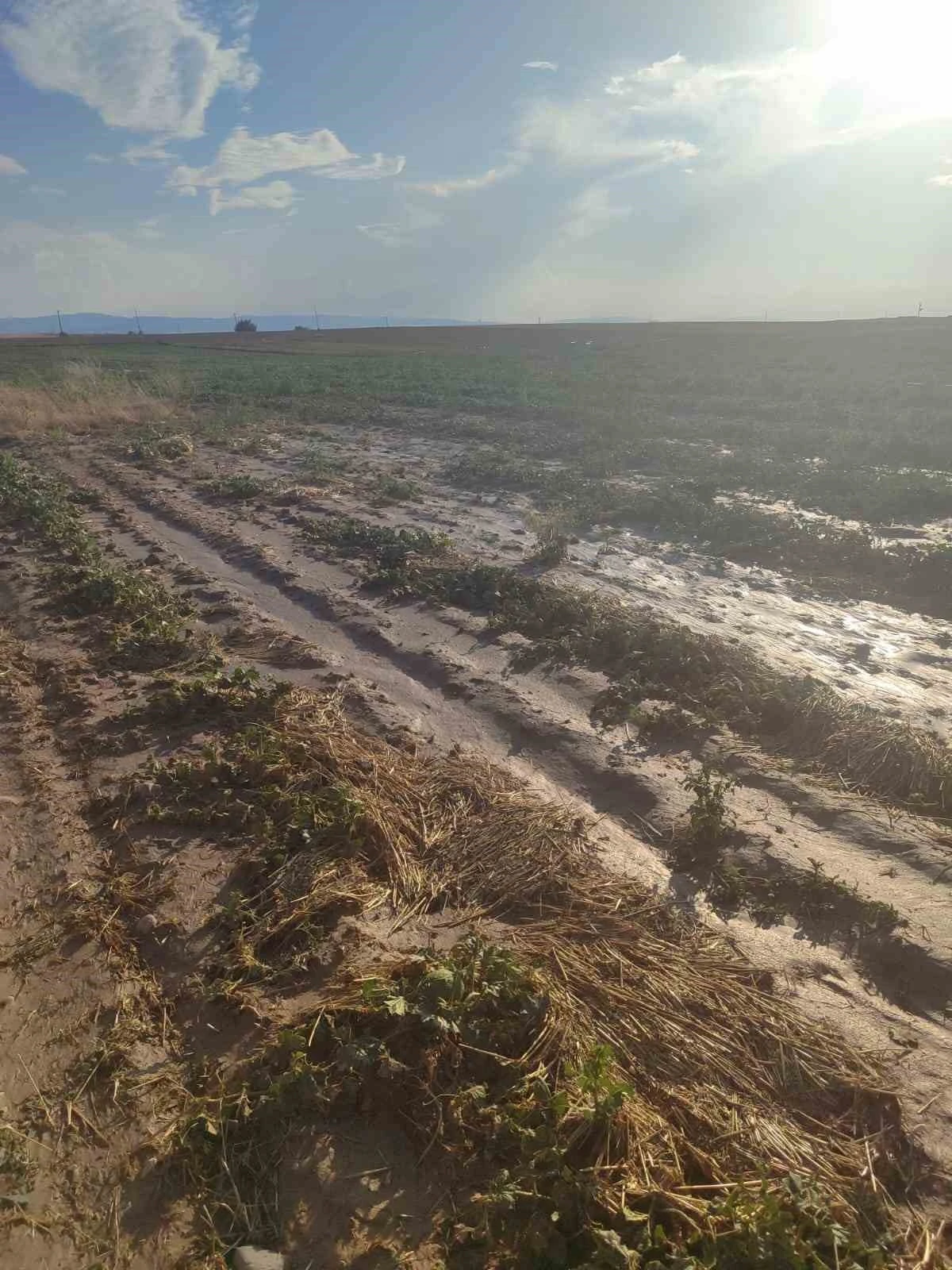 Ankara’nın Beypazarı ilçesinde dün akşam meydana gelen sağanak yağış sonrası, Kırbaşı Mahallesi’nde bulunan ekili arazilerde büyük hasar oluştu. Mahsul zarar görürken, ekili alanlar sel suları altında kaldı. Kırbaşı Mahallesi Muhtarı Osman Yurdakul, yetkililerden selden dolayı zarar gören tarlalara hasat tespit çalışması yapılmasını istedi.