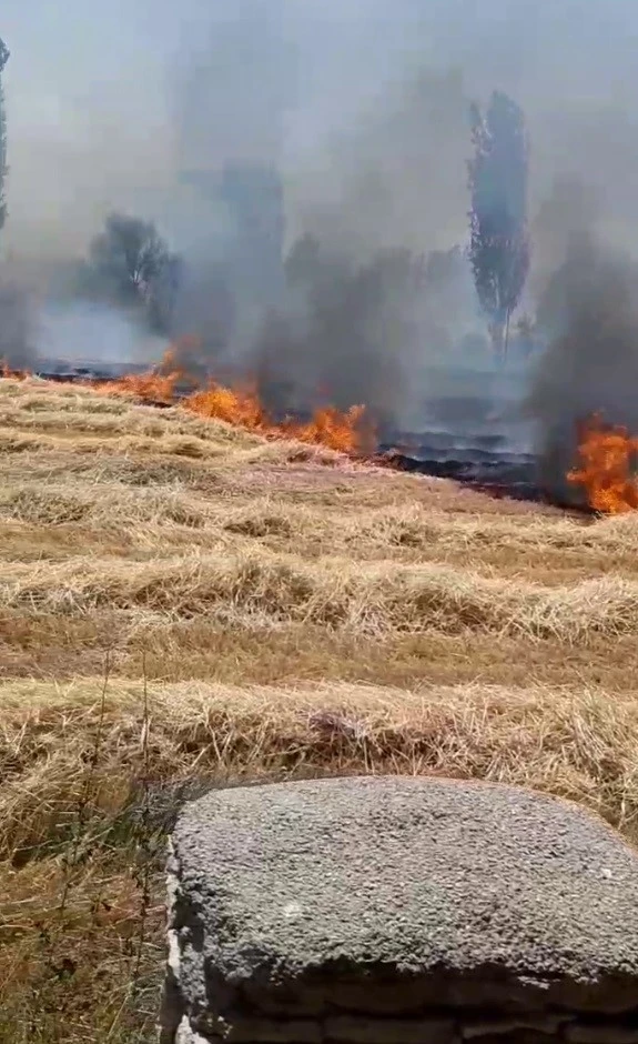 Mahalle sakini eski muhtarlardan Zekeriya İnan, yerleşim merkezindeki arazide çıkan anız yangınında iki evin son anda yanmaktan kurtarıldığını söyledi.
