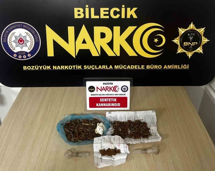 Bozüyük İlçe Emniyet Müdürlüğü ekiplerince yürütülen uyuşturucu operasyonunda takip edilen şüphelinin bir ikamet adresine girdiği tespit edildi. İkamet adresinden çıkan şüphelinin üzerinde yapılan aramada; 31,07 gram bonzai maddesi ele geçirilerek şüpheli yakalandı. İkamet adresinde yapılan aramada içeride bulunan bir diğer şüpheli yakalanarak, 12,76 gram bonzai maddesi ve 2 adet uyuşturucu kullanmaya yarayan cam aparat ele geçirildi.2 şüpheli hakkında ‘Kullanmak İçin Uyuşturucu Madde Satın Almak, Kabul Etmek Veya Bulundurmak’ suçundan yasal işlem başlatıldı. İkamette yaşayan şüpheli gözaltına alınarak, ‘Uyuşturucu Veya Uyarıcı Madde İmal Ve Ticareti’ suçu kapsamında yasal işlem başlatılarak çıkarıldığı adli makamlarca tutuklandı. Şüpheli Bilecik M Tipi Kapalı Ceza İnfaz Kurumu’na teslim edildi.