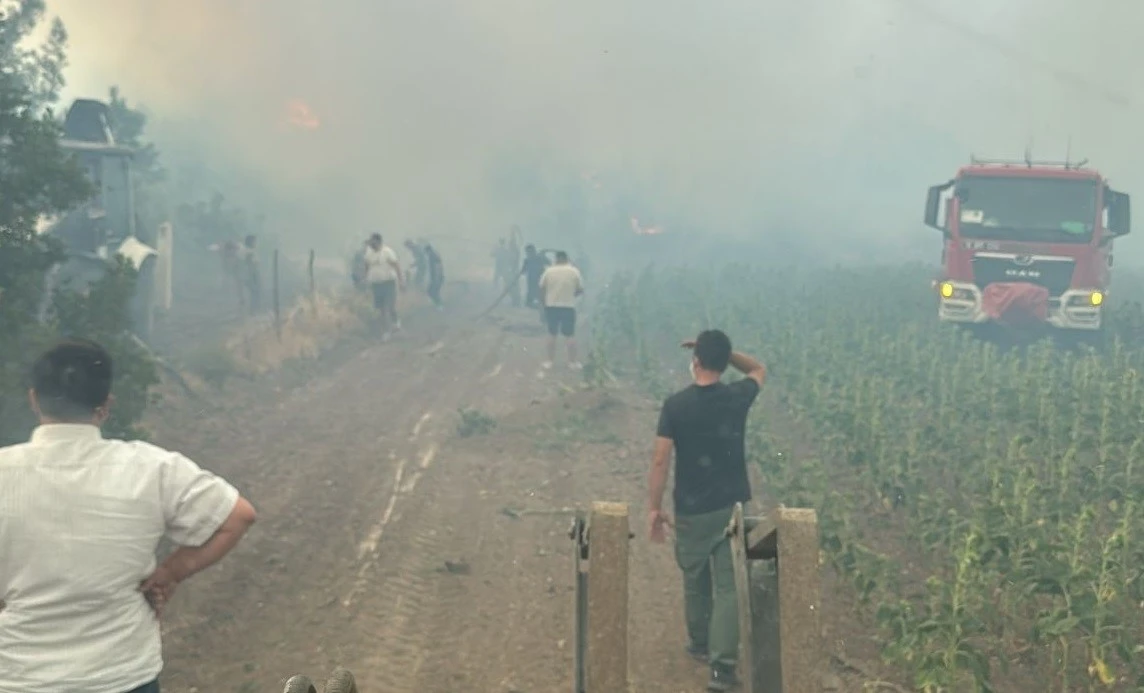 Bilecik’te öğleden sonra başlayan orman yangını rüzgarın etkisiyle hızla yayılırken, Kuyubaşı köyü tedbir amaçlı boşaltıldı.