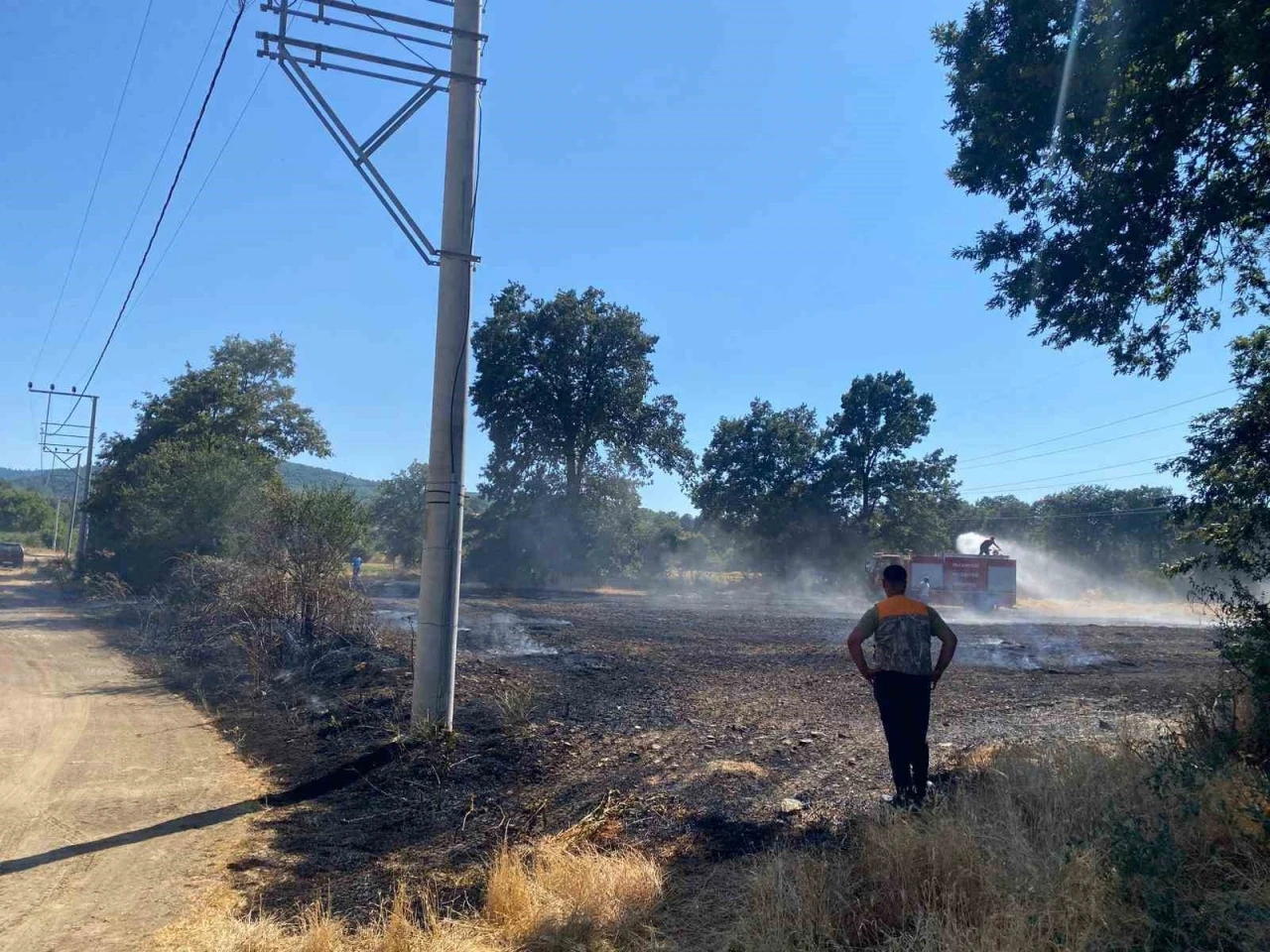 Bilecik’in Pazaryeri ilçesine bağlı Demirköy-Kurtköy bölgesinde yer alan buğday tarlasında başlayan yangın ormanlık alana sıçradı. Ekipler, yangını söndürmek için müdahale ediyor.