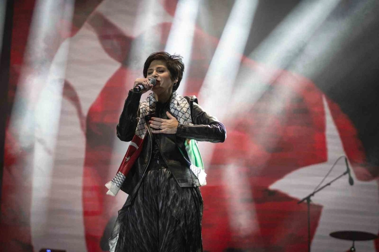 Konserine Filistin atkısı takarak devam eden Aydilge, "Filistinli kardeşlerimize dualarımızı ve iyi dileklerimizi hep birlikte gönderelim" diyerek şarkısını binlerce Bingöllü ile birlikte Gazze için söyledi.