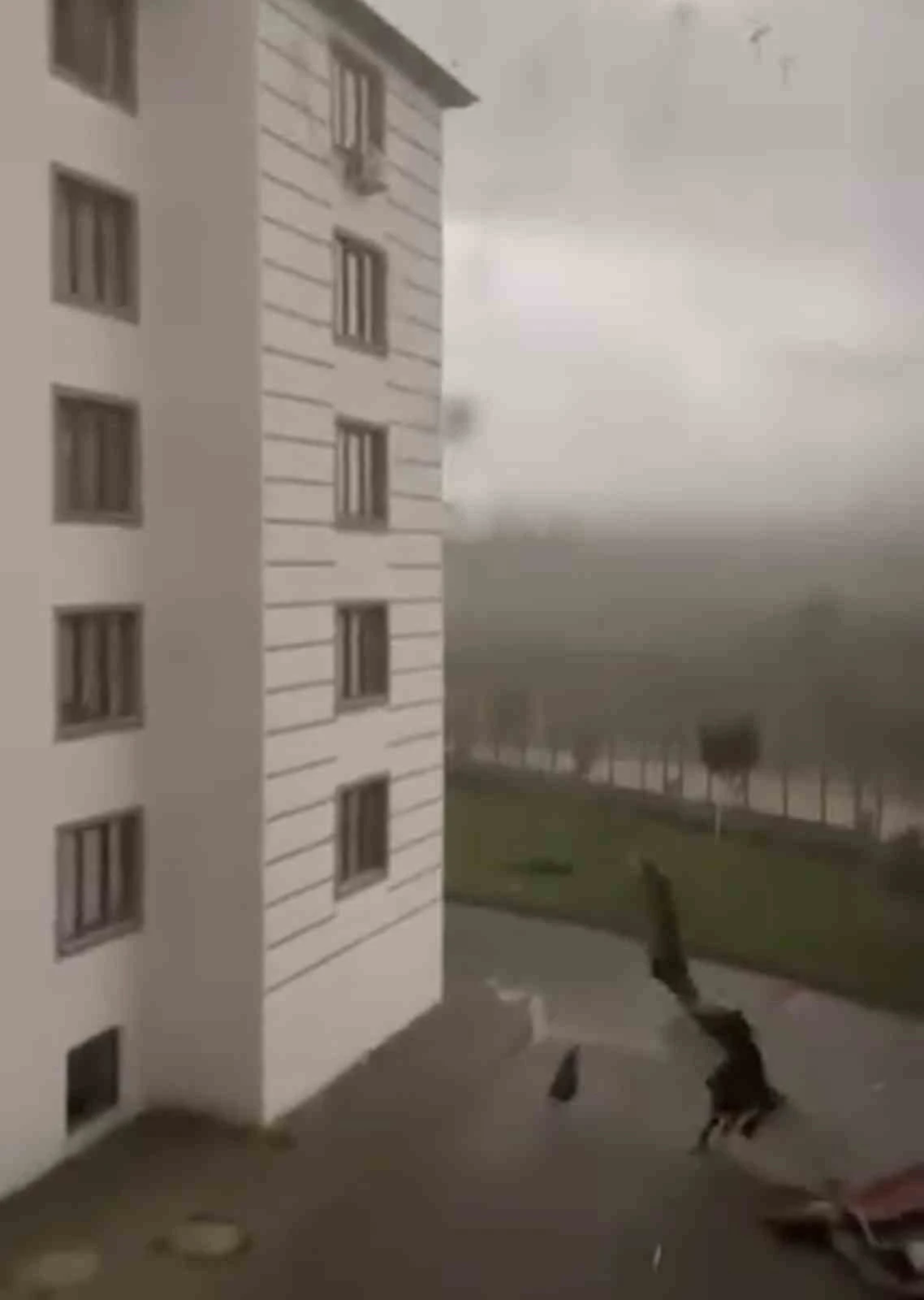 Bingöl’de etkili olan fırtına birçok evin çatısını uçurken, uçan bir parça ise çocuğun üzerinde geldi. O anlar cep telefonu kamerasına yansıdı.