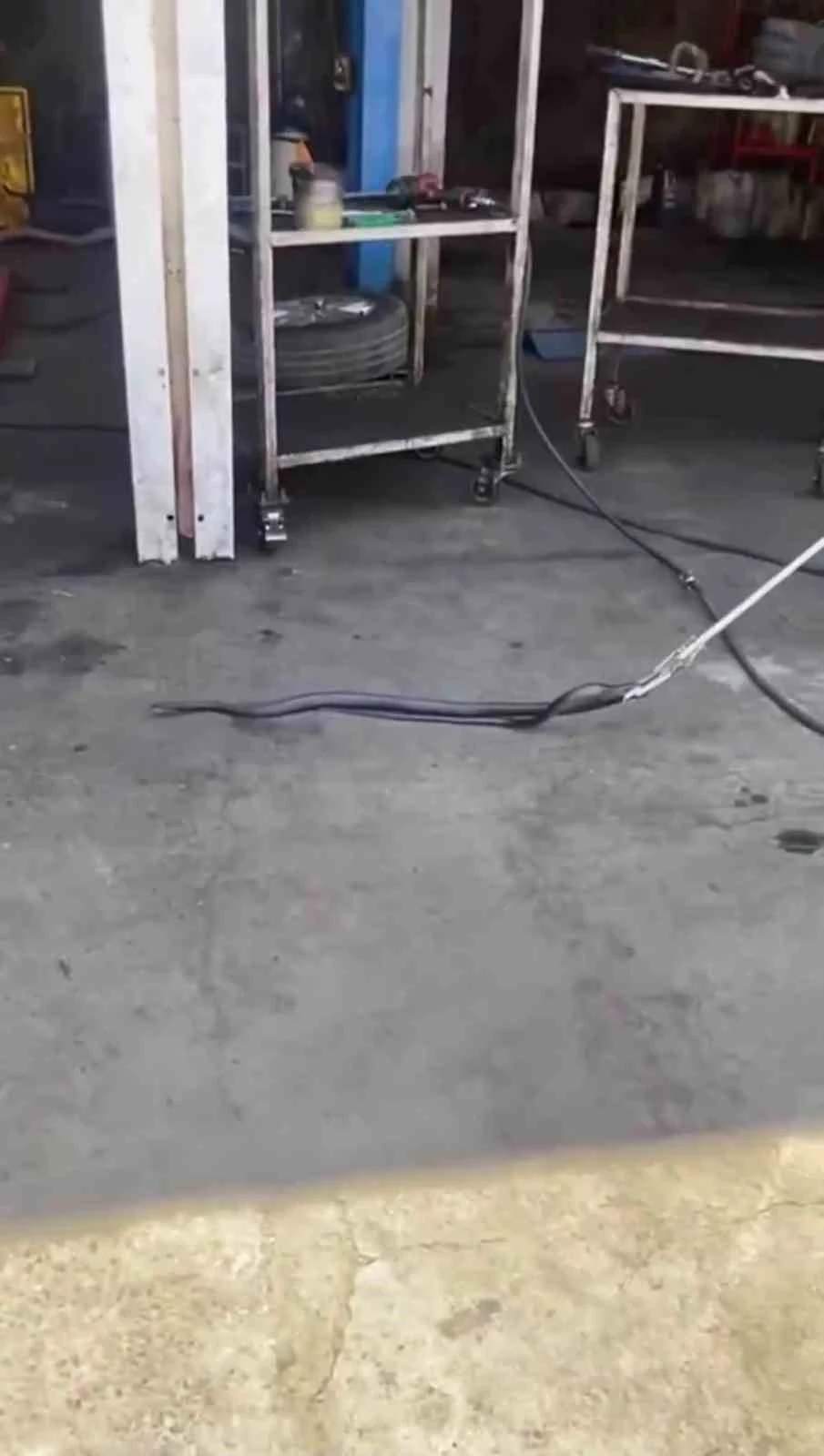 Bingöl’de oto tamir işletmesine giren yılan paniğe neden oldu.