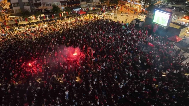 A Milli Futbol Takımı’nın Hollanda ile karşı karşıya geldiği EURO 2024 çeyrek final maçını Kocaeli’de binlerce kişi kurulan dev ekranda izlendi. Taraftarlar, golle ile birlikte büyük sevinç yaşadı.