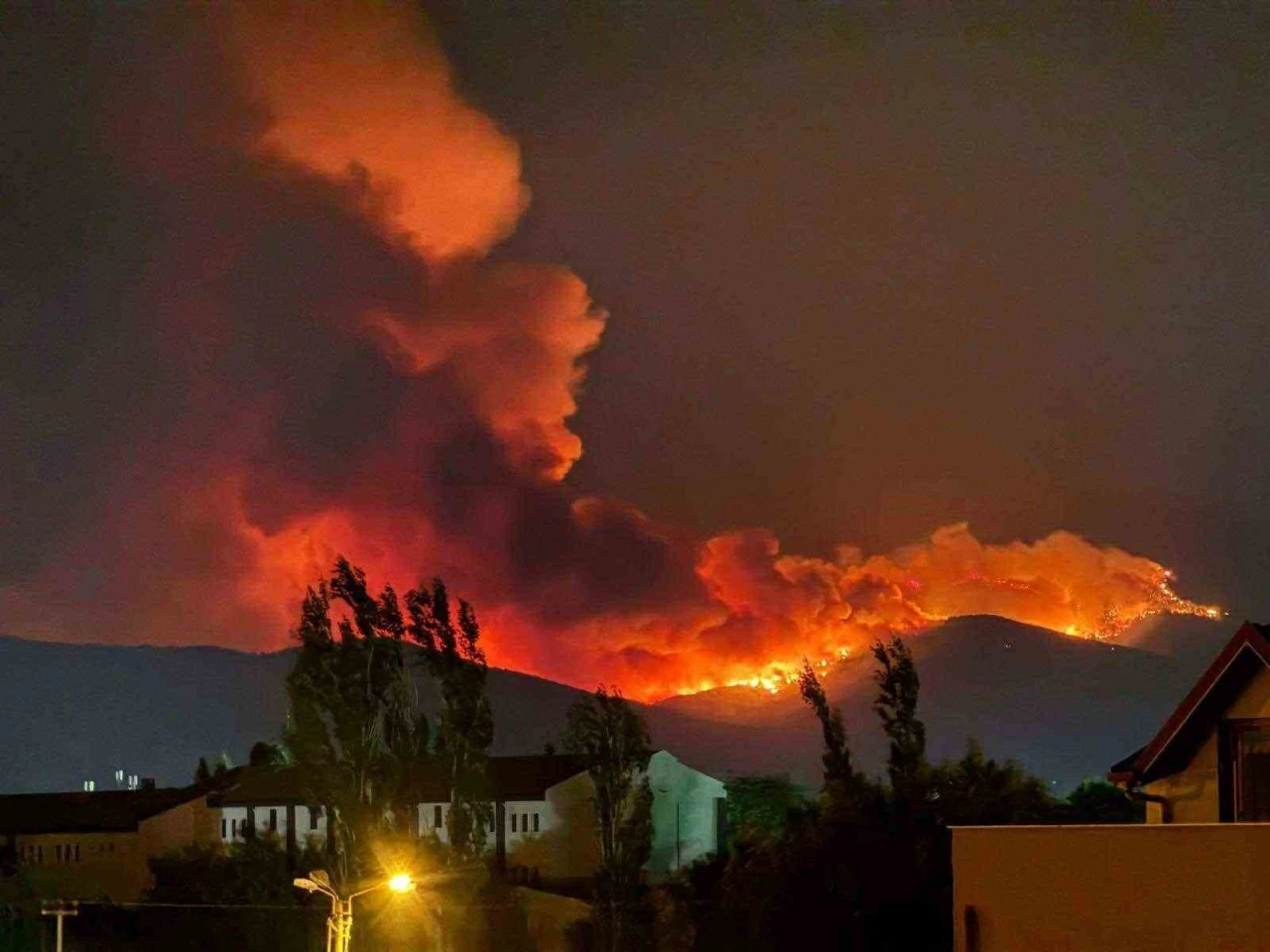 Yangın 22.00 sıralarında, ilçeye bağlı Tosunlar Mahallesi’ndeki ormanlık alanda meydana geldi. Şiddetli rüzgârın etkisiyle yayılan alevler yerleşim yerlerine yaklaşırken, bölgeye ekipler sevk edildi.