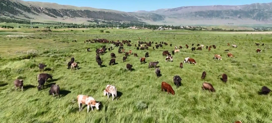 Bitlis’in Güroymak ilçesinde meralarda bahar aylarının gelmesiyle otlayan mandalar, ortaya koydukları görsel şölenle belgesel sahnelerini aratmadı.