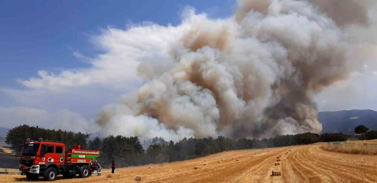 Bolu’nun Mudurnu ilçesinde anız tarlasında başlayan yangın, rüzgarın da etkisiyle kısa sürede büyüyerek ormanlık alana yayıldı.