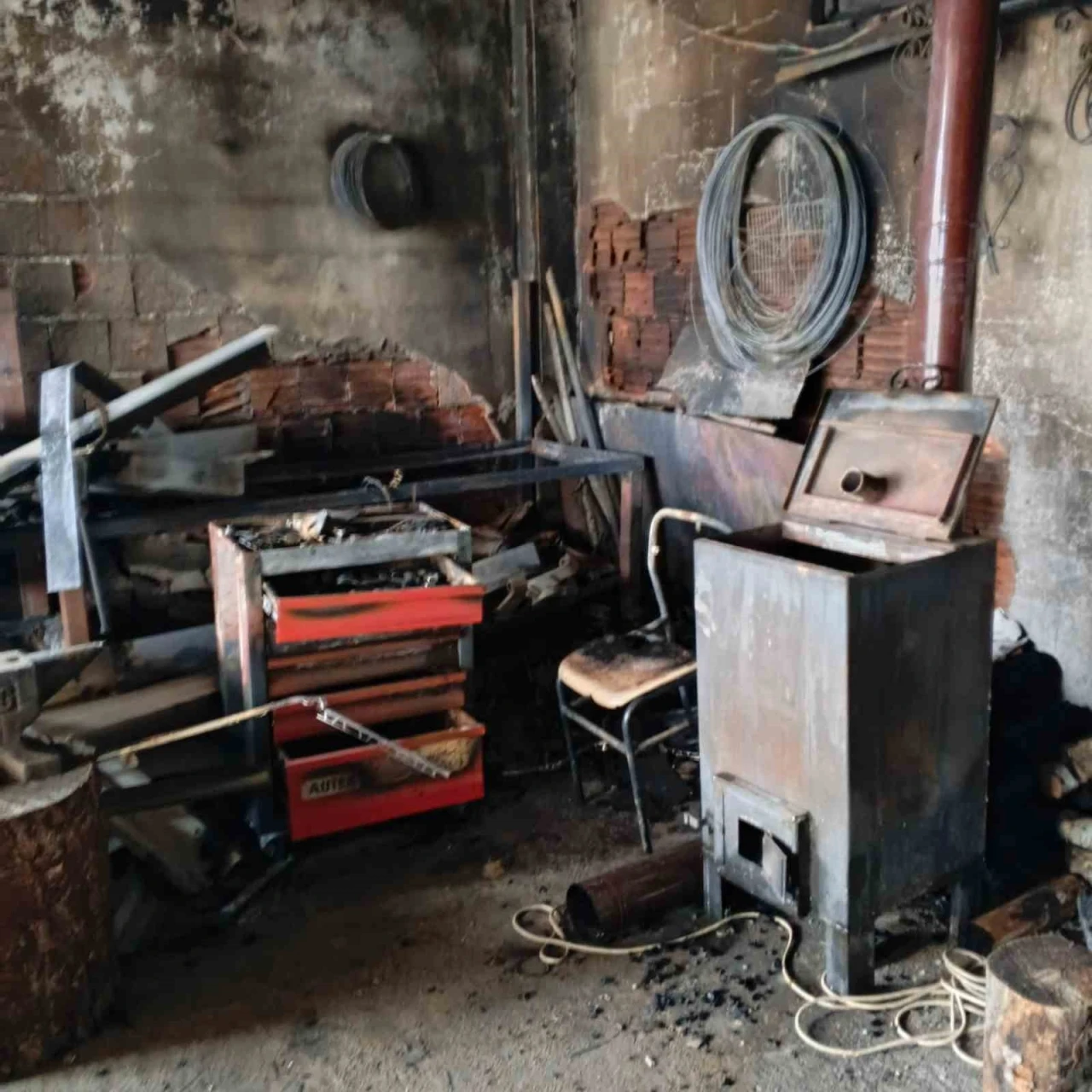 Bolu’nun Mengen ilçesinde demir doğrama dükkanında çıkan yangında, boya ve tinerlerin tutuşması sonucu iş yeri tamamen kullanılamaz hale geldi.