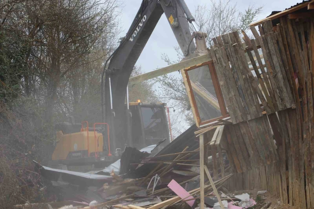 Bolu’da Gölköy bölgesinde çay bahçesi olarak faaliyet gösteren işletmede, ruhsatsız yapılar yapıldığı gerekçesiyle Bolu Belediyesi ekipleri tarafından kepçeyle yıkım işlemi yapıldı. İş yeri sahibinin ailesi yıkıma tepki gösterdi.