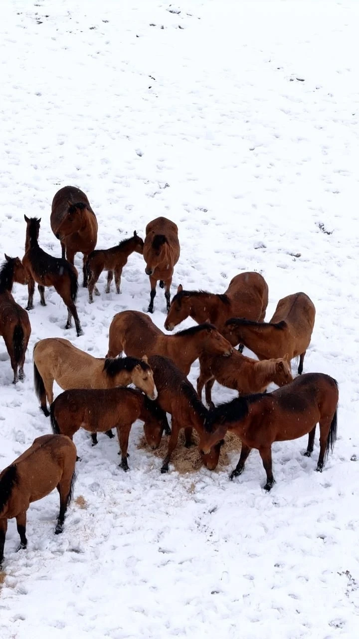 Bolu’da günlerdir etkili olan soğuk hava ve aralıklarla devam eden kar yağışı, doğadaki yaban hayatını olumsuz etkiledi. Kent merkezine 15 kilometre uzaklıkta bulunan At Yaylası’nda yaşayan yılkı atları, Kürkçüler Mahallesi’ne kadar indi. Atlar, atıl halde bulunan Bolu eski Güzel Sanatlar Lisesi’nin bahçesine girdi. Okul bahçesinde yılkı atlarını gören vatandaşlar durumu belediye yetkililerine bildirdi. Sürü halinde gezen ve aç oldukları düşünülen yılkı atları için belediye ekipleri harekete geçti. Ekipler tarafından, okul bahçesine çuvallarla saman getirerek aç kalan yılkı atlarının beslenmesini sağladı.