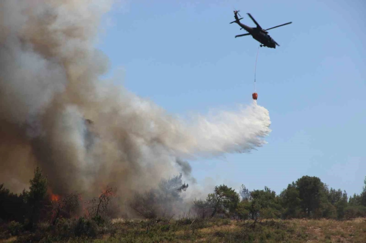 İzmir’in Buca ilçesinde dün başlayan orman yangınına havadan ve karadan müdahale devam ediyor. Sarnıç Gölet etrafında yoğunlaşan çalışmalarda zaman zaman alevler yükselse de ekiplerin hızlı müdahalesi ile yangının büyümesinin önüne geçiliyor.