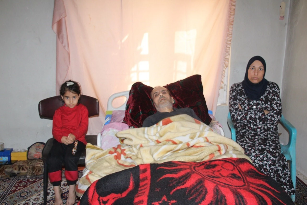 Şanlıurfa’nın Ceylanpınar ilçesinde yaşayan ve geçimini bisiklet tamir ederek sağlayan 47 yaşındaki yabancı uyruklu İsmail Basri, yaklaşık 7 ay önce evinin önündeki ağacı budamak için üzerine tırmandı. Ağacın dallarını budadığı sırada dengesini kaybeden talihsiz adam, yaklaşık 4 metre yüksekten yere çakıldı. Olay yerine giden ambulansla Ceylanpınar Devlet Hastanesi’ne kaldırılan Basri’nin boynunda kırıklar olduğu belirlendi. Tedavi altına alınan şahsın boynundan aşağısı felç kaldı. Çocukları başından ayrılmıyor