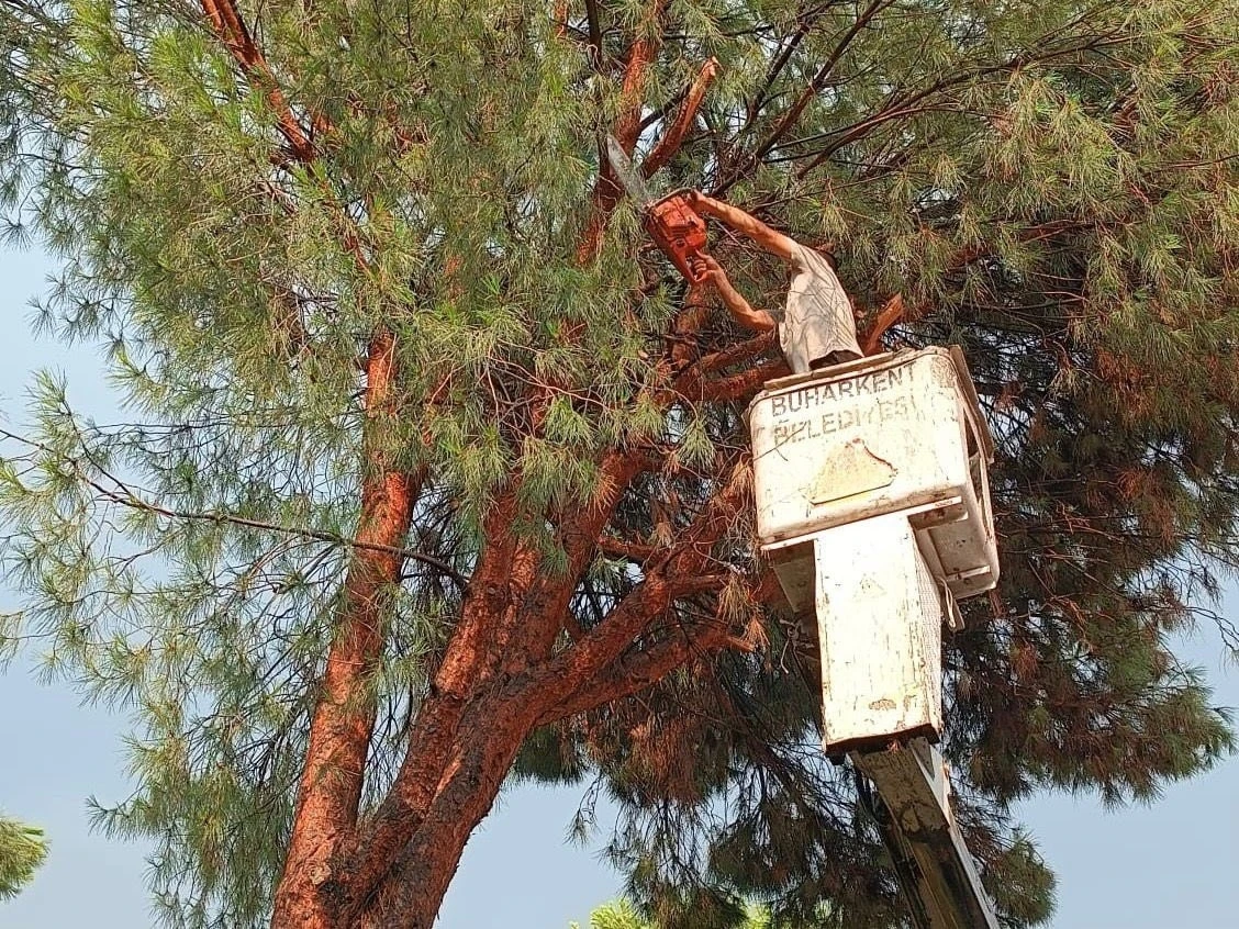 Aydın’ın Buharkent ilçesinde etkili olan dolu yağışı ve şiddetli rüzgar nedeniyle devrilen ağaçlara belediye ekipleri hızla müdahale etti. Buharkent’te dün akşam saatlerinde dolu yağışı ve şiddetli rüzgar etkili oldu. Olumsuzluklara karşı teyakkuza geçen belediye ekipleri ise bazı bölgelerde yaşanan ağaç devrilmelerine hızla müdahale etti. Buharkent Belediyesi Fen İşleri ile Park ve Bahçe ekipleri, olumsuzlukları tespit ederek çevre temizliği çalışması gerçekleştirdi. Konu ile ilgili Buharkent Belediyesi’nden yapılan açıklamada "Akşam saatlerinde ilçemizde etkili olan yoğun dolu ve şiddetli rüzgar nedeniyle bazı bölgelerde ağaç devrilmeleri ve çevresel zararlar meydana gelmiştir. Belediyemiz Fen İşleri ile Park ve Bahçe birimi ekiplerimiz, yaşanan olumsuzlukların ardından tespit edilen tüm noktalara ivedilikle müdahale ederek çevre temizliği çalışmalarını tamamlamış, vatandaşlarımızın güvenliği için gerekli tüm önlemleri almıştır" ifadelerine yer verdi.