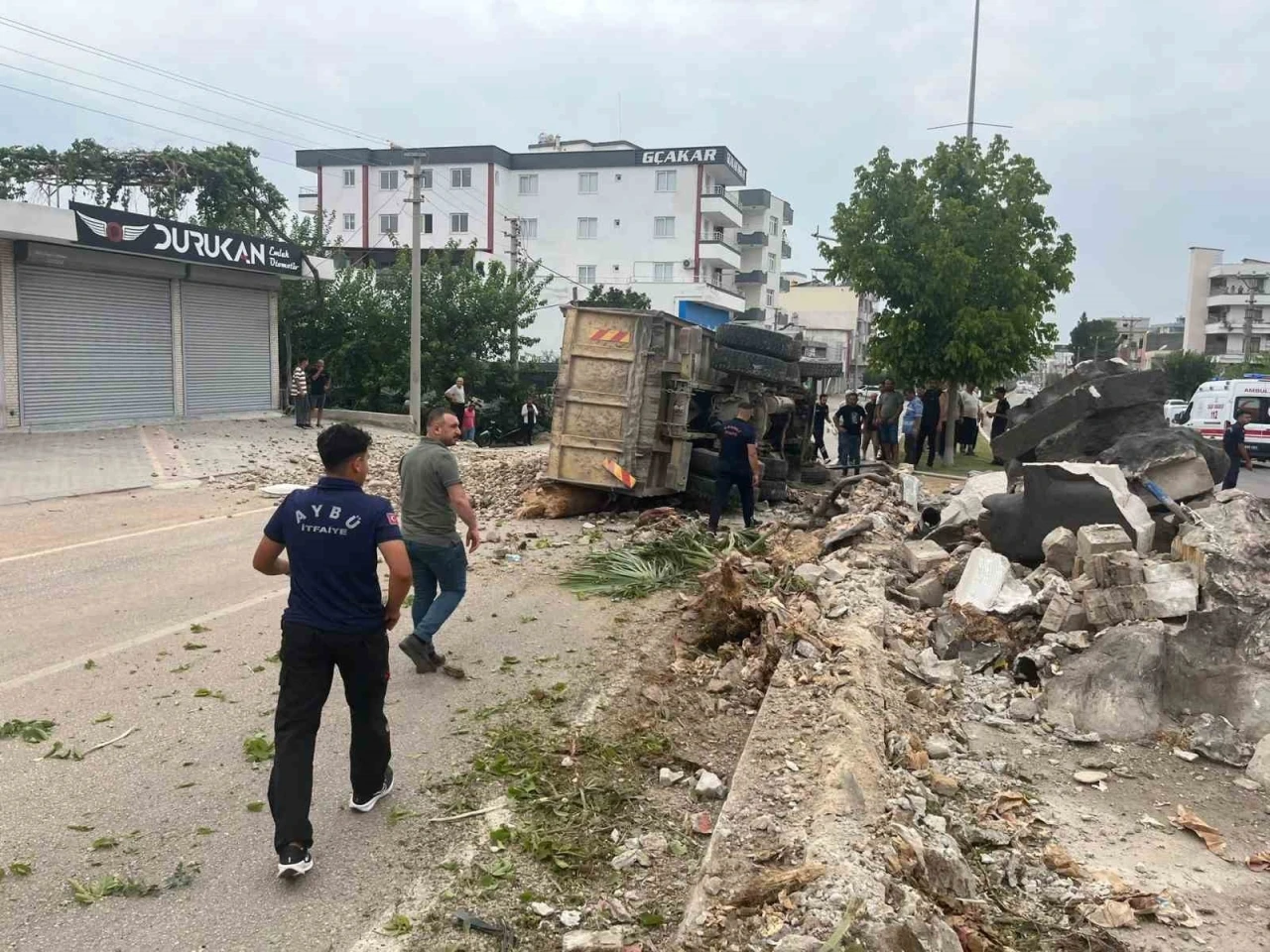Edinilen bilgiye göre, Kadirli ilçe merkezi Kamil Kara Bulvarı üzerinde Kadir Kıvrak yönetimindeki Köylere Hizmet Götürme Birliğine ait resmi plakalı kamyon, sürücüsünün direksiyon hakimiyetini kaybetmesi sonucu önce orta refüje çarptı ardından da yol üzerine doğru yan yatarak devrildi. ihbar üzerine kaza yerine sağlık ve itfaiye ekipleri sevk edildi. İtfaiye ekipleri ve çevredekilerin yardımıyla kamyon şoförü sıkıştığı kamyon kabininden çıkarılarak sağlık ekiplerine teslim edildi. Kazadan yaralı kurtulan şoför Kadir Kıvrak’ın hastanede tedavisi sürüyor.