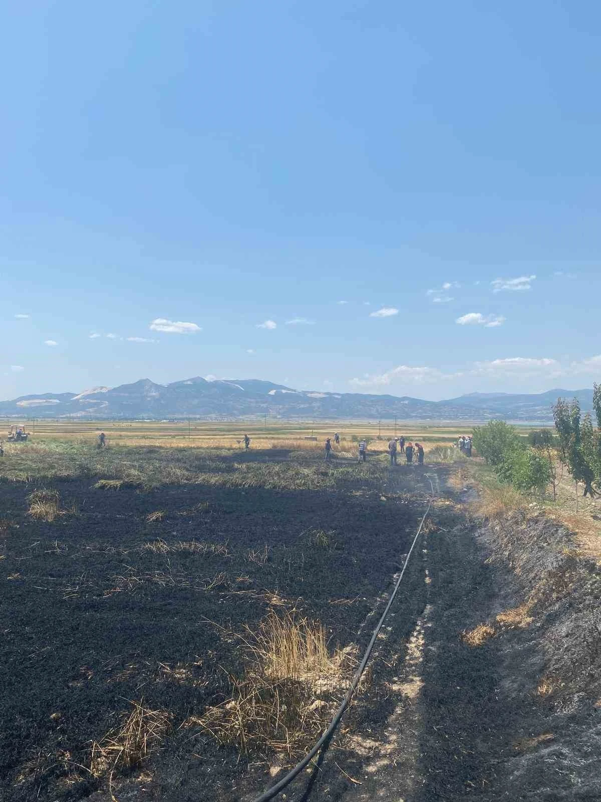 Burdur’da Akyaka köyünde çıkan yangında 3 dönüm buğday ekili alan zarar gördü.