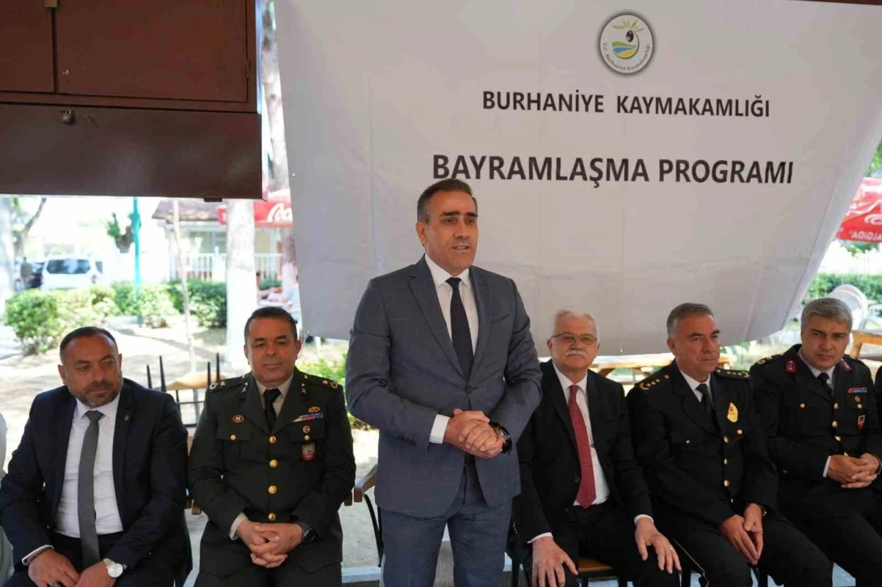 Bayramlaşma törenine Burhaniye Kaymakamı İlyas Memiş, Belediye Başkanı Ali Kemal Deveciler, İlçe Garnizon Komutanı Topçu Binbaşı Yusuf Kaya, İlçe Jandarma Komutanı Ünal Bayhan, İlçe Emniyet Müdürü Faik Karabaş, Belediye Başkan Yardımcıları Oktay Erbalaban, Ayten Tuna ve Tamer Midilli, Belediye Meclis Başkan Vekili Tarık Erdil, siyasi parti temsilcileri, belediye meclis üyeleri ve diğer ilçe protokolü temsilcileri katıldı.