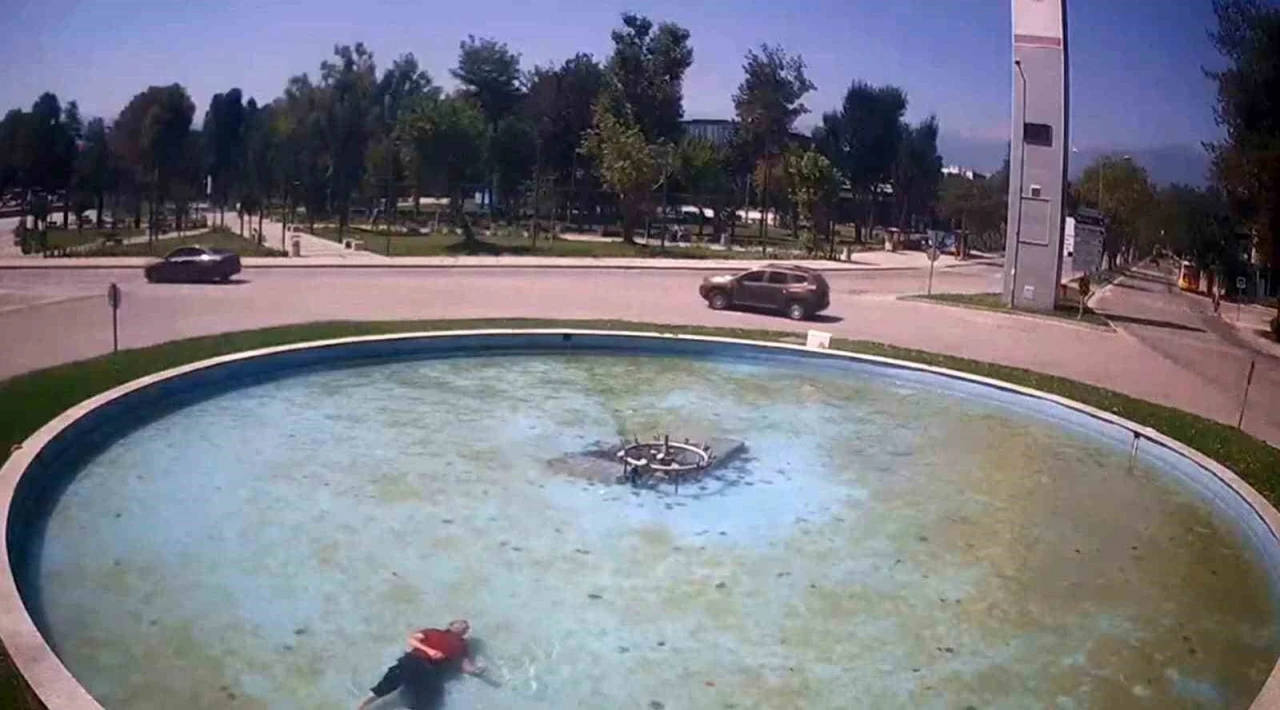 Bursa’nın İnegöl ilçe merkezinde bulunan süs havuzuna düşen alkollü şahıs, polis ekiplerinin hızlı müdahalesiyle boğulmaktan son anda kurtarıldı. Şahsın boğulmak üzere olduğu ve polis ekiplerinin kurtardığı anlar bir işyerinin güvenlik kamerasına saniye saniye yansıdı.