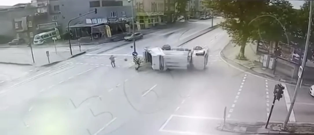 Bursa’nın Yıldırım ilçesinde sabah saatlerinde seyir halindeki çöp kamyonu kontrolden çıkarak refüje girdi. Çarpmanın etkisiyle takla atan kamyon ters dönerken, ortalık savaş alanına döndü. Kaldırımda bekleyen bir vatandaş ise kazayı kıl payı atlattı. Kazayı gören vatandaşlar sürücünün yardımına koşarken, o anlar güvenlik kamerasına saniye saniye yansıdı.