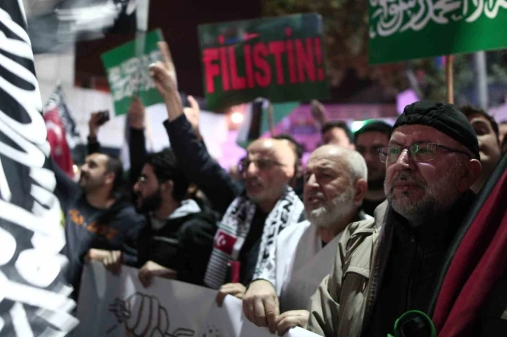 Bursa’da vatandaşlar, İsrail’in Gazze’deki el-Ehli Baptist Hastanesi’ne yaptığı saldırıyı protesto etti.