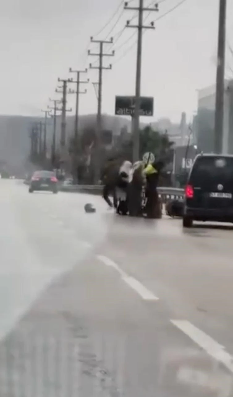 Olay, Kestel ilçesi Barakfakih Mahallesi’nde meydana geldi. Edinilen bilgiye göre, İnegöl Yolu üzerinde ilerleyen motokurye ile hafif ticari aracın sürücüsü arasında sözlü tartışma çıktı. Çıkan tartışma sonrası araçtan inen sürücü motokuryeyi darp etmeye başladı. O anlar kameraya yansırken, kavgayı ayırmaya çalışan kadınların çabası sonuç vermedi. Bir çocuk ise olan bitenleri şaşkınlıkla izledi.