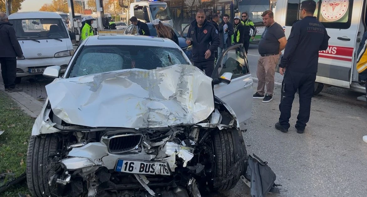 Olay, merkez Nilüfer ilçesi Karaman Mahallesi Mudanya Yolu üzerinde meydana geldi. Edinilen bilgiye göre, trafikte hız yapan ve birbirleriyle yarıştıkları öne sürülen iki otomobil sürücüsü, direksiyon hakimiyetini kaybetti. Kontrolden çıkan araçlar önce seyir halindeki belediye otobüsüne çarptı, çarpmanın etkisiyle savrulan araçlar kaldırıma çıkarak durabildi.