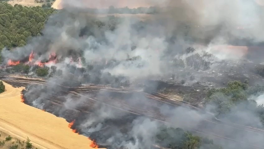 Gökyüzünü kaplayan dumanlar sebebiyle bölge halkı büyük endişe yaşarken, alevlerin arasında kalan bir biçerdöver yanarak kullanılamaz hale geldi. Bursa Orman Bölge Müdürlüğü ekiplerinin yoğun çalışması sonucu yangın kontrol altına alındı, bölgede soğutma çalışmaları devam ediyor.