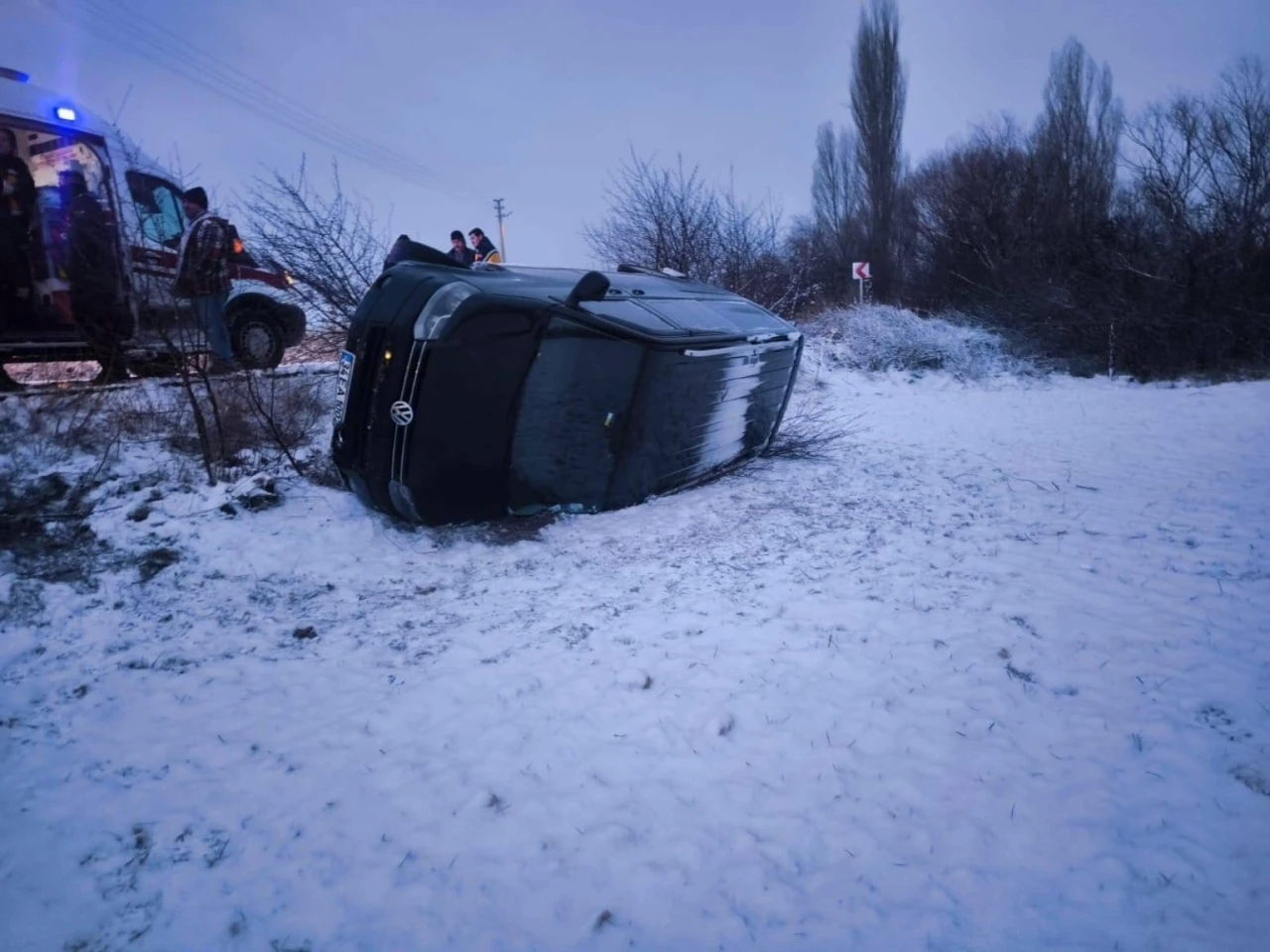 Afyonkarahisar’da yağan kar sonrası buzlanan yolda kayan minibüsün şarampole devrilmesi sonucu yaşanan trafik kazasında 5 kişi yaralandı.