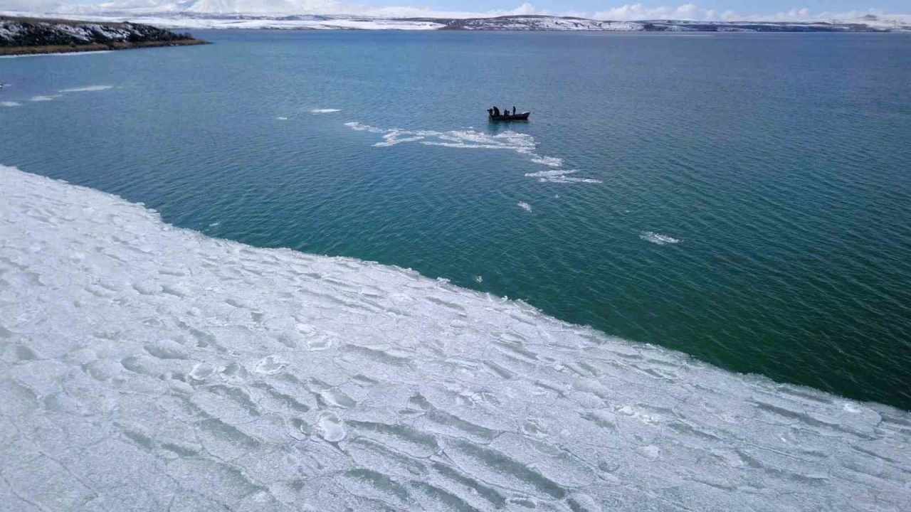 Kış mevsiminde şiddetli soğuk nedeniyle yüzeyi buz tutan Bitlis’in Ahlat ilçesindeki Nazik Gölü’nün çözülmesi ortaya kartpostallık görüntüler çıkardı.