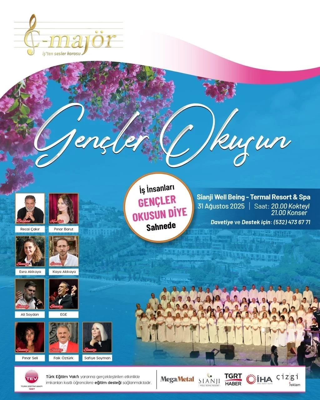 C-Majör Türkiye İş’ten Sesler Korosu, gençlerin eğitimine destek sağlamak amacıyla 31 Ağustos Pazar 21.00’de Bodrum’daki 15. gönüllü yardım konserini düzenleyecek. Türk Eğitim Vakfı (TEV) iş birliğiyle Sianji Well-Being Resort’ta gerçekleştirilecek konser, C-Majör Türkiye Koro Şefi Pınar Barut yönetiminde sahne alacak.