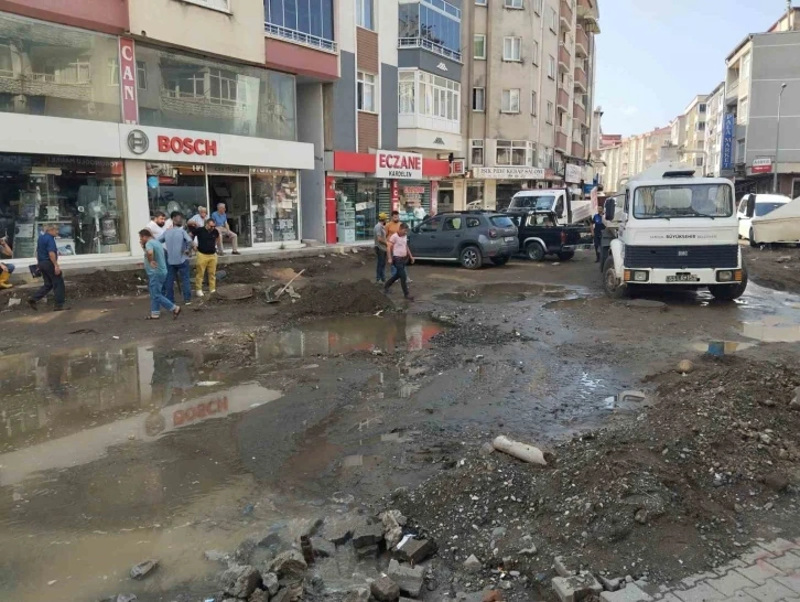 Samsun Çarşamba ilçesinde devam eden altyapı çalışmaları sırasında su borusu patladı.