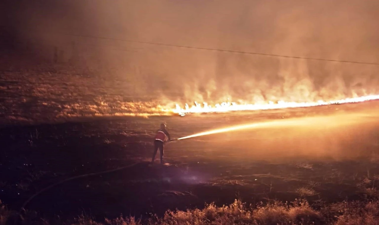 Van’ın Çaldıran ilçesinde çıkan anız yangını çevredeki evlere sıçramadan itfaiye ekipleri ile vatandaşlar tarafından söndürüldü.