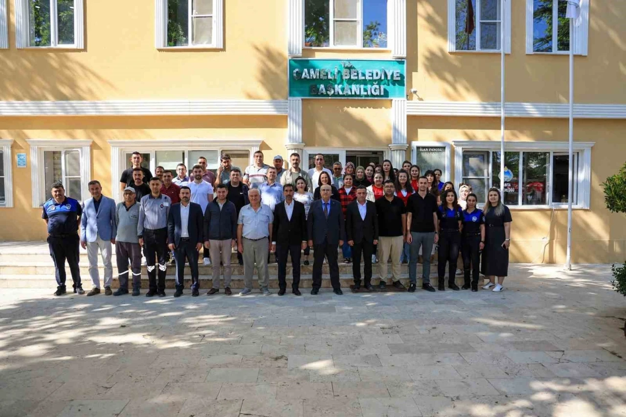 Çameli Belediyesi önünde düzenlenen bayramlaşma programında, Belediye Başkanı Cengiz Arslan, belediye personeliyle bir araya gelerek, mesai arkadaşlarının bayramını kutladı. Bayramlaşma töreninde konuşan Başkan Cengiz Arslan, birlik ve beraberlik mesajı vererek şu ifadeleri kullandı: