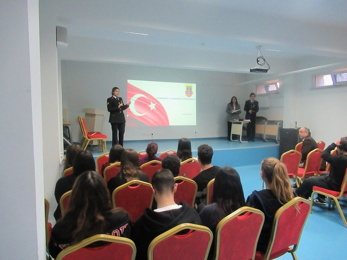 Çanakkale’de İl Jandarma Komutanlığı Aile İçi Şiddetle Mücadele ve Çocuk Kısım Amirliği ekiplerince lise öğrencilerine flört şiddeti ve siber zorbalık konularında eğitim verildi. Çanakkale İl Jandarma Komutanlığı Aile İçi Şiddetle Mücadele ve Çocuk Kısım Amirliği, Siber Suçlarla Mücadele Şube Müdürlüğü iş birliği ile gerçekleştirilen ’Geleceğe Işık Ol’ projesi kapsamında planlanan eğitimlerde öğrencilerine flört şiddeti ve siber zorbalık konuları ele alındı. Gençlerin siber zorbalık ve siber zorbalıktan korunma yolları ve flört şiddeti, flört şiddeti çeşitleri, güvenli ilişki, ilişkide sınır koyma ve ilişkinin güvenli olmadığı durumlarda neler yapılabileceği, nerelere başvurulabileceği hakkında öğrenim gören 260 öğrenciye eğitim verilerek, jandarma mesleği tanıtıldı.