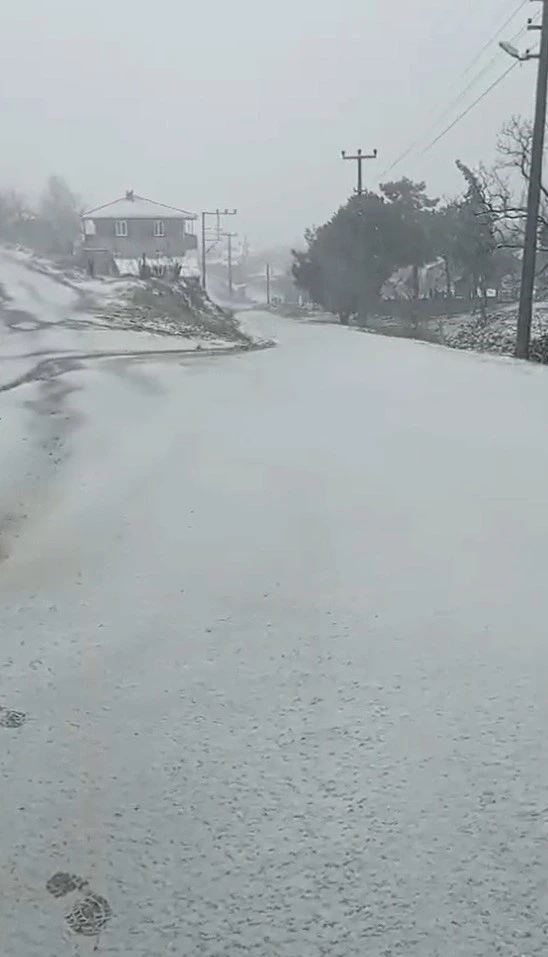 Çanakkale’nin Biga ilçesine bağlı Camialan köyü, başlayan kar yağışıyla beyaza büründü.