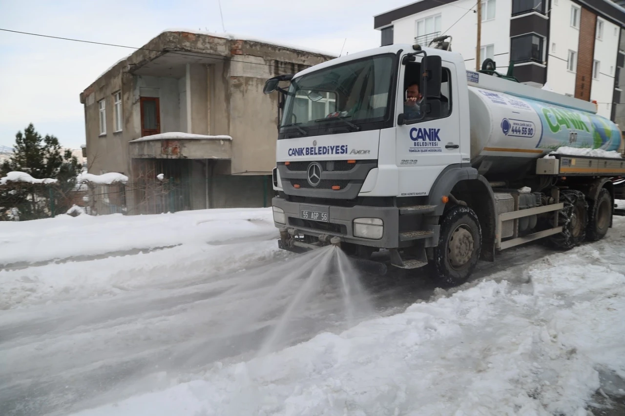 Samsun’un Canik Belediyesi, ilçede etkili olan kar yağışlarına 89 bin 680 kilogram solüsyon ve 121 bin 150 kilogram tuz ile müdahale etti.