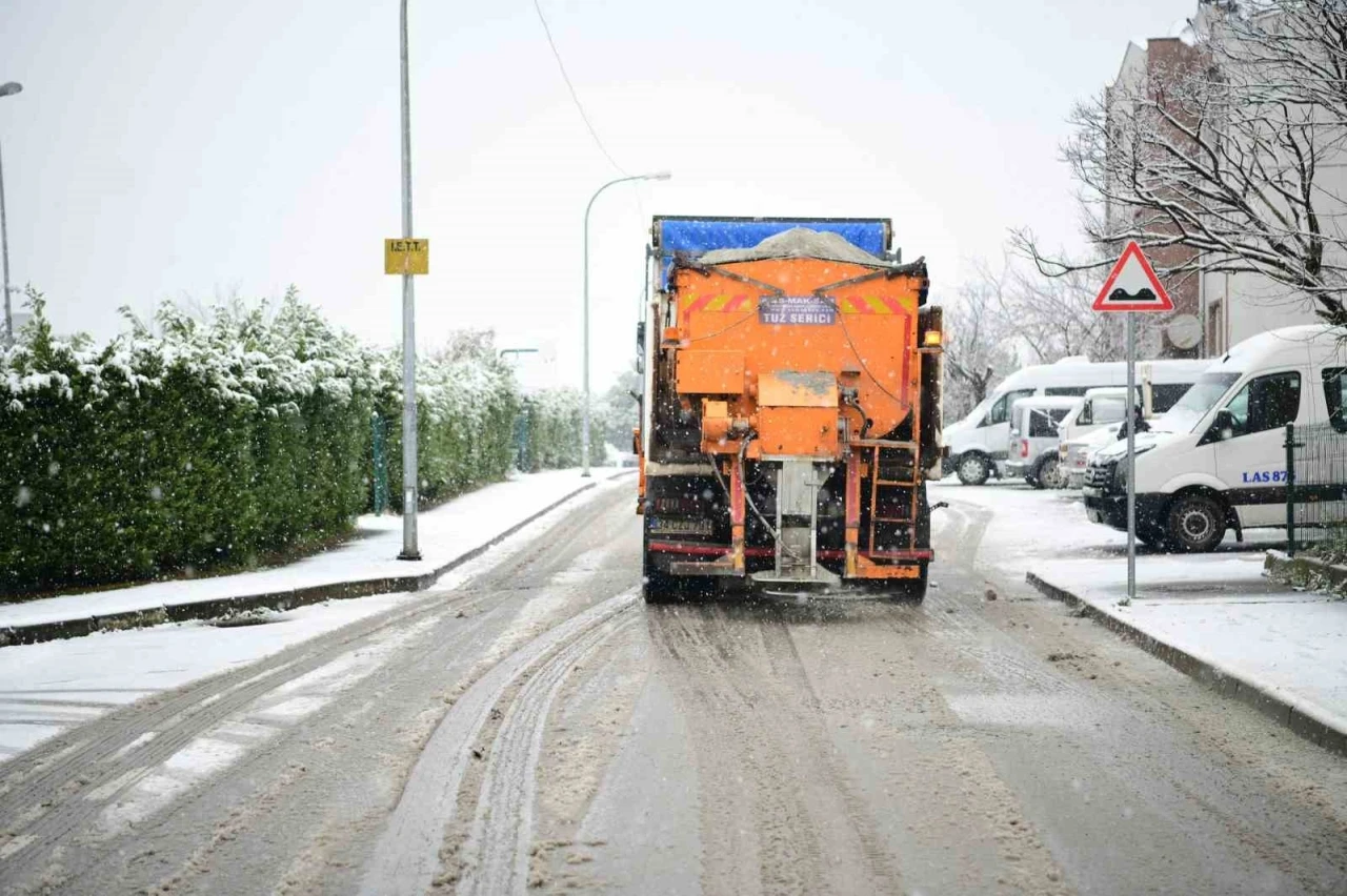 Çayırova Belediyesi ekipleri, ilçede etkili olan kar yağışı nedeniyle ulaşımda aksama yaşanmaması için çalışma yürütüyor.