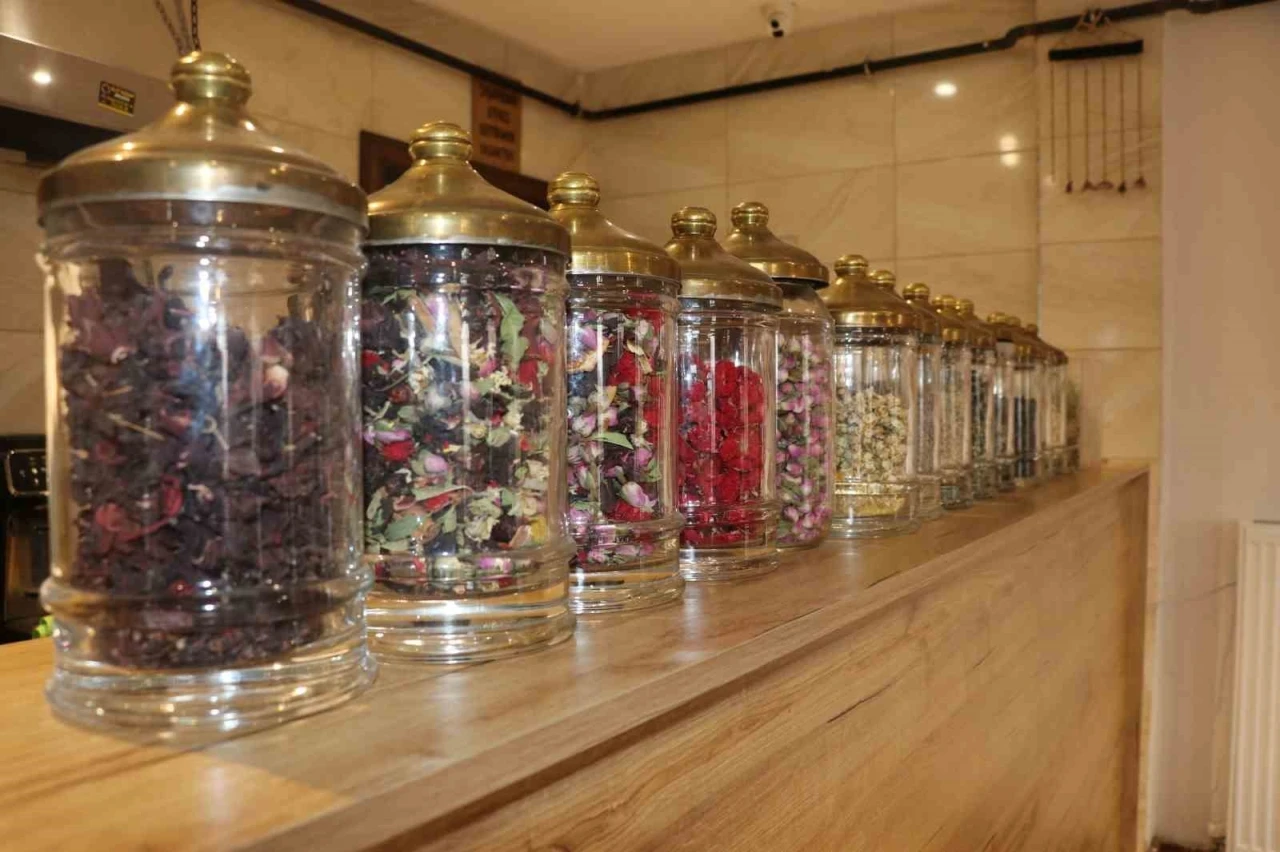 Sivas’ta bir kafede 50 farklı bitki çayı, müşteriler ve işletmecinin ortak kararıyla verilen ilginç isimleri ve renkleriyle yoğun ilgi görüyor.