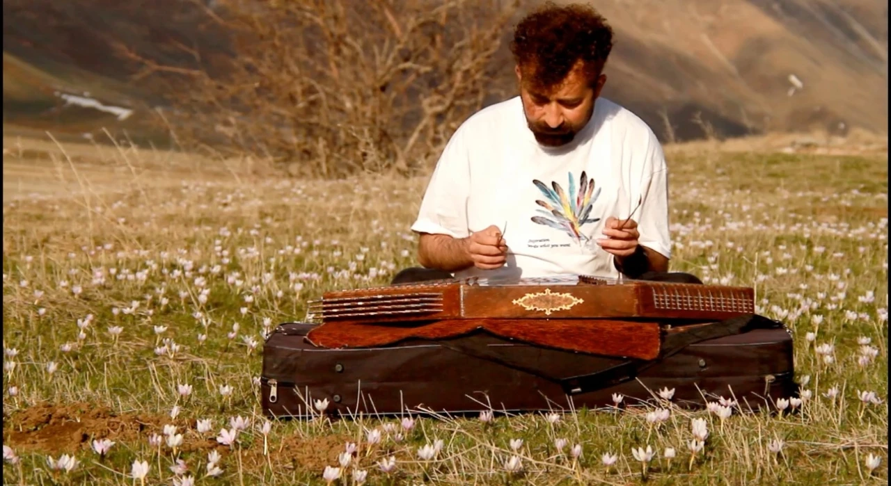 Hakkari’nin Yüksekova ilçesinde baharın müjdecisi olan çiğdemler arasında santur çalan Ümit Bartın, doğaya dikkat çekti.