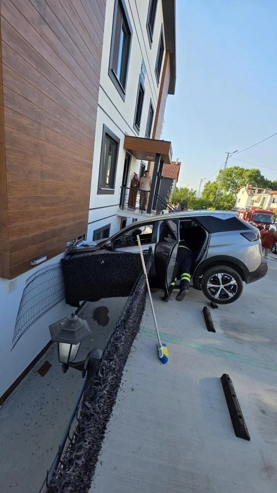 Kaza Seymen mahallesinde meydana geldi. Z.A. idaresindeki cip, sürücüsünün direksiyon hakimiyetini kaybetmesi neticesi kayarak binanın duvarına çarptı. Askıda kalan araç için olay yerine itfaiye ve sağlık ekipleri sevk edildi. Ekiplerin dikkatli çalışmasıyla araç bulunduğu yerden kurtarıldı, sürücü Z.A. ise araçtan çıkarıldı.