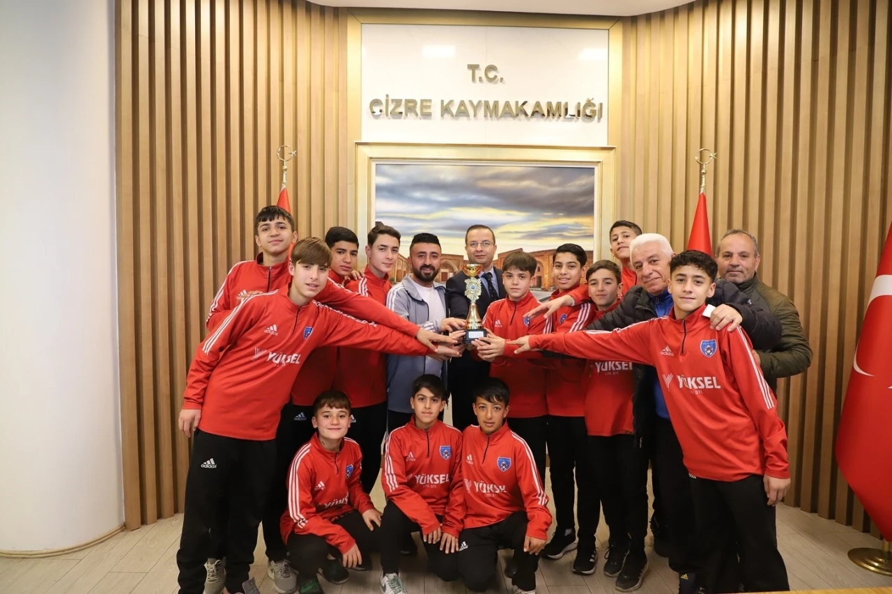 Şırnak U14 Gelişim Liginde şampiyon olan Cizre Dicle Spor Futbol Takımı, şampiyonluk kupasını Kaymakam Ahmet Vezir Baycar’a götürdü.