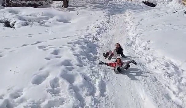 Yazıhan ilçesinde kar kalınlığının yer yer yarım metreyi bulmasıyla birlikte ilçeye bağlı Böğürtlen Mahallesi’nde karı fırsata çeviren çocuklar, soğuk havaya aldırış etmeden tepsi ve bidon gibi buldukları malzemelerle kayarak doyasıya eğlendi.