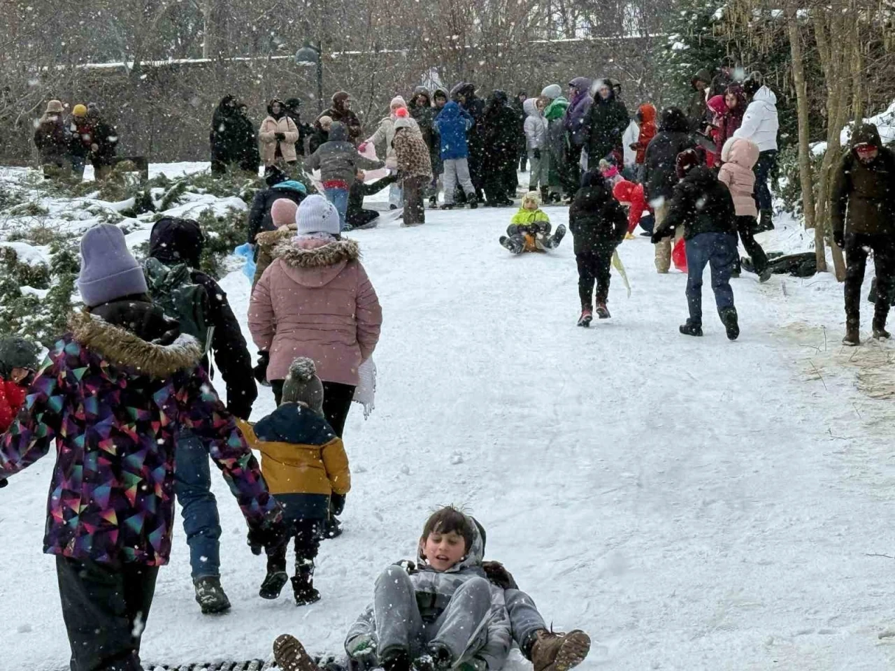 Sarıyer’de aralıklarla etkisini sürdüren kar yağışının ardından hafta sonunu fırsat bilen çocuklu aileler Atatürk Kent Ormanı’na akın etti. Çocuklar, karın tadını çıkarıp doyasıya eğlendi.