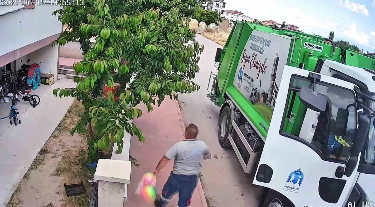 Merzifon ilçesinde Yunus Emre Mahallesi’nde belediyenin çöp kamyonu, konteynerde biriken çöpü yükleyip hareket ettiği esnada altına kaçan top ezilerek patladı. Çöp kamyonunun toplarını patlattığı çocuklar ise duruma üzüldü. Durumu fark eden temizlik işçileri Emrah Bardakçı, Kadir Öztürk ve Ömer Semiz, çocukları sevindirmek için 10 dakika içinde bakkaldan aldıkları 2 topla mahalleye geri dönerek oynadıkları alana bırakıp işlerine devam etti.
