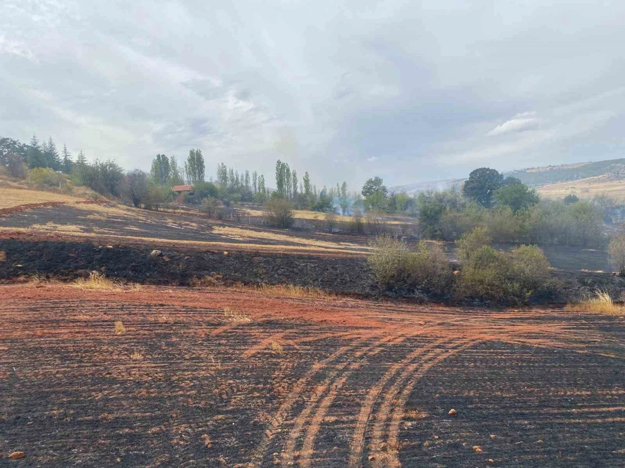 Çorum’un Alaca ilçesinde çıkan yangında 250 dönüm tarla ve 15 dönüm ormanlık alan zarar gördü.