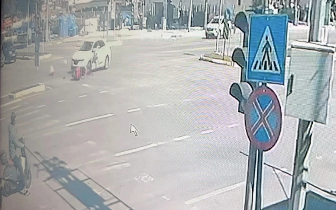 Polis ekipleri kazayla ilgili inceleme başlatırken, kaza anı bir iş yerinin güvenlik kamerasına yansıdı. Görüntülerde motosiklet ve otomobilin aynı istikamette seyir halinde olduğu görülüyor. Otomobil kavşaktan dönüş yapmak isteyen motosiklete arkadan çarpıyor. Çarpmanın etkisiyle düşen motosiklet sürücüsü yerde sürükleniyor.