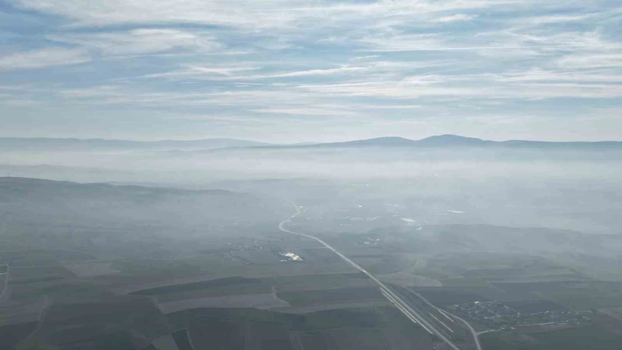 Çorum’da sabah saatlerinde hava sıcaklığının düşmesi sebebiyle sis etkili olmaya başladı. Kent merkezinde de etkili olan sis, Ankara-Samsun karayolunda görüş mesafesini düşürdü. Sisle kaplanan Çorum havadan görüntülendi.