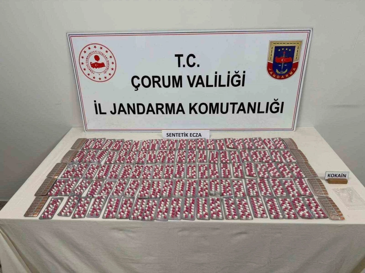 Edinilen bilgiye göre, Çorum İl Jandarma Komutanlığı ekipleri tarafından uyuşturucu ticaretinin önlenmesine yönelik yürütülen çalışmalar çerçevesinde, Sungurlu belirlenen bir adreste arama yapıldı. Aramada, bin 585 adet sentetik ecza hapı ve 1 gram kokain ele geçirildi.
